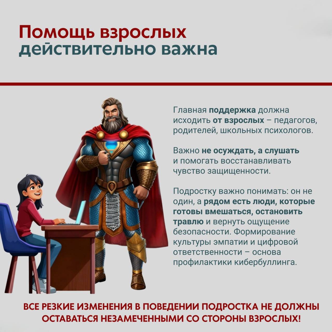 Зачастую, она ведет к тяжёлым последствиям для психологического состояния ребёнка. Правильным решением предотвратить негативные последствия, это обратиться за помощью к взрослым, которые не осудят, а только помогут. Оставить обращение можно здесь https://complect.edu-rb.ru/antibullying/create.