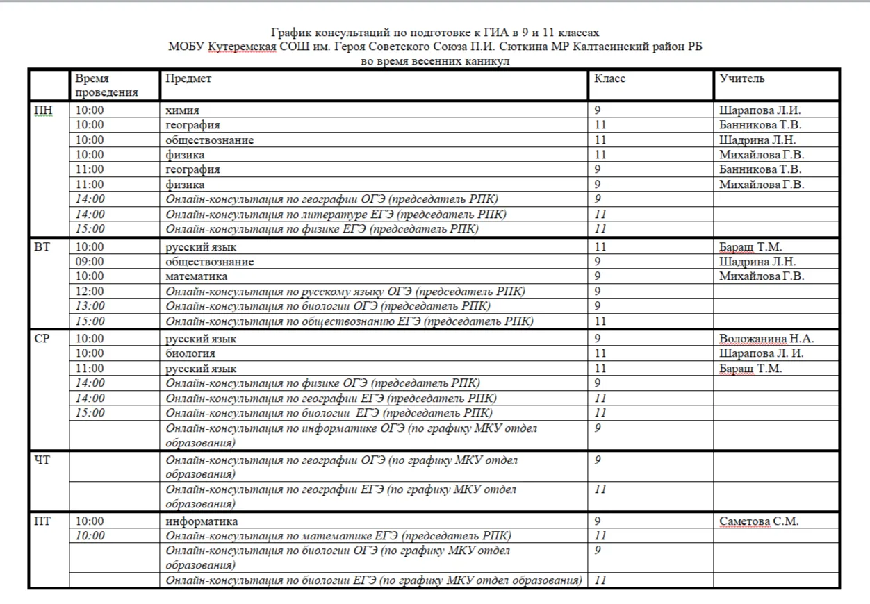 С 24 марта по 01 апреля 2026 года планируется проведение онлайн-консультаций по всем учебным предметам по подготовке к ОГЭ 2026 года (по графику https://edu.bashkortostan.ru/e-course/OO/189964 ).