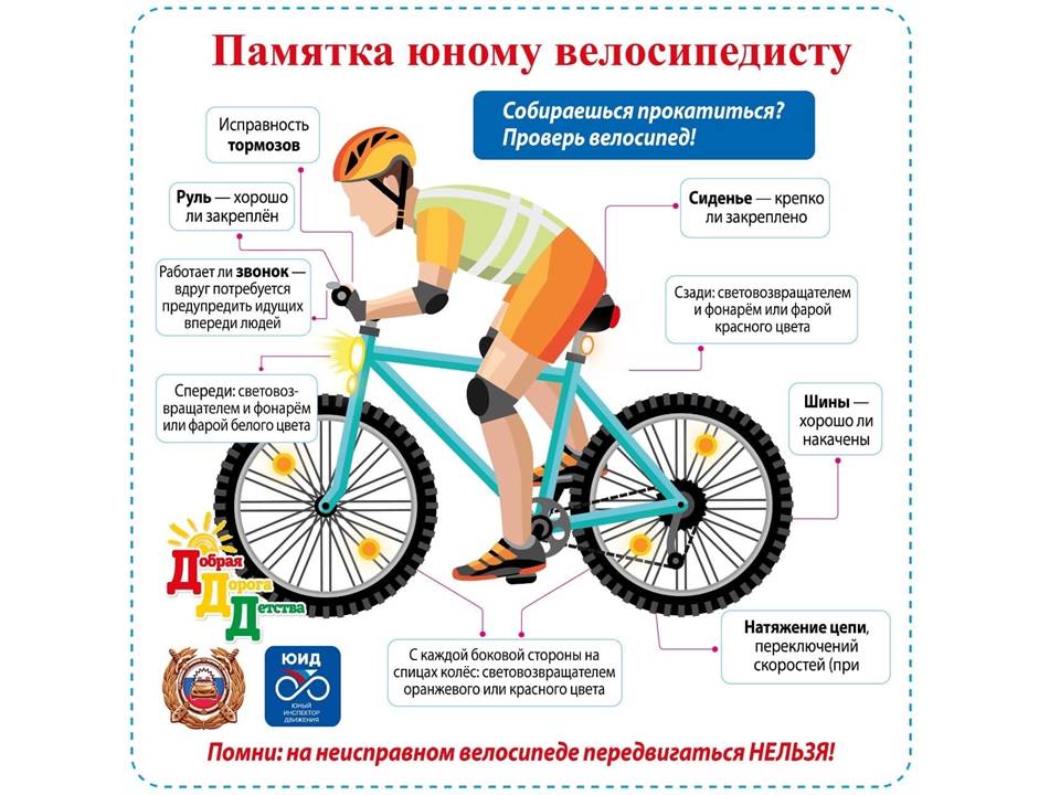 - без номерного знака, звонка, с ненадёжными тормозами и рулевым управлением, а в тёмное время суток, кроме того, без зажжённого фонаря (фары) белого цвета спереди и красного фонаря (или светоотражателя) сзади;