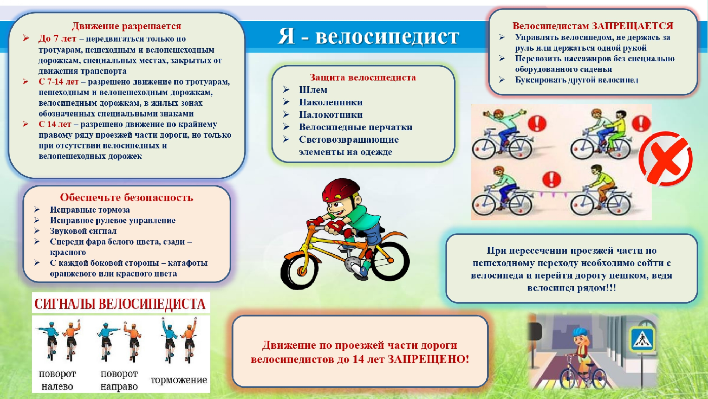 - Езда на велосипедах по улицам и дорогам разрешается детям не моложе — 14 лет.